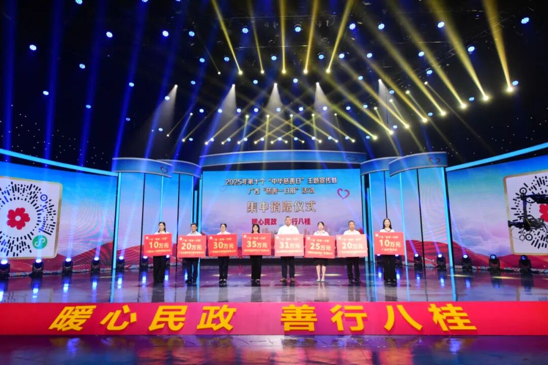 9月5日晚,2025年全國第十個“中華慈善日”主題宣傳暨廣西“慈善一日捐”活動集中捐贈儀式在廣西廣播電視臺隆重舉行。華業(yè)集團總裁龍其偉、集團黨委副書記王孟軍出席活動,并代表集團捐贈慈善款項20萬元。