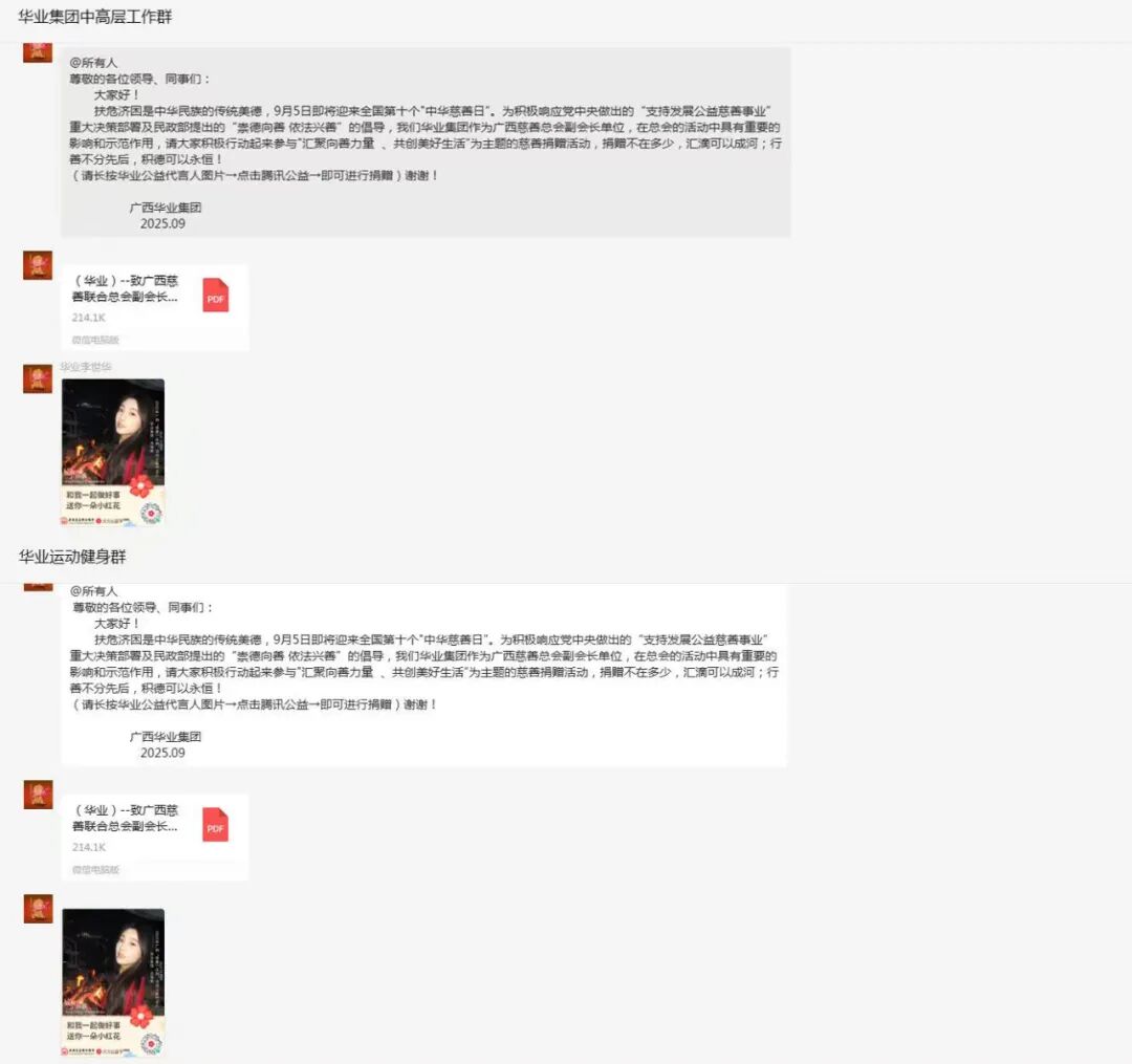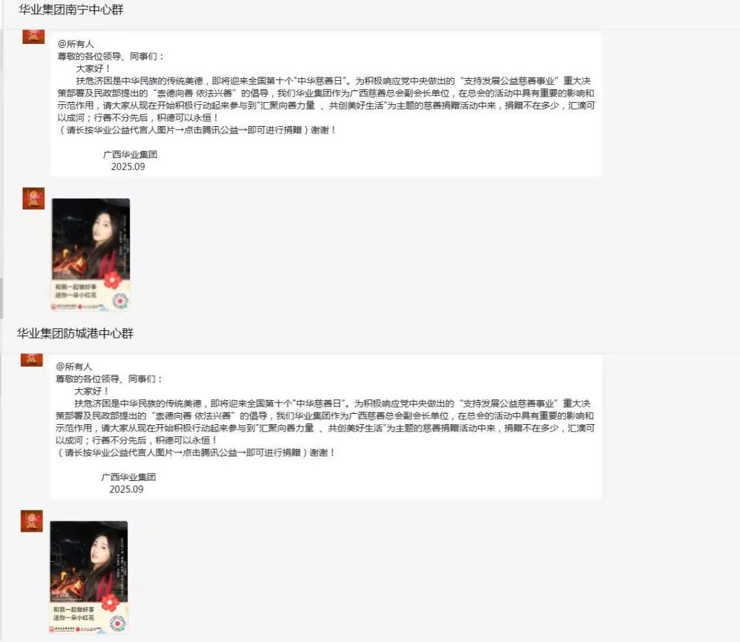 活動期間,華業(yè)集團積極宣傳動員,通過內部會議、企業(yè)微信工作群、微信公眾號等平臺發(fā)布廣西慈善聯(lián)合總會活動倡議書及企業(yè)公益代言人募捐二維碼,構建“線上+線下”捐款助力雙通道,連續(xù)多日引導員工通過掃碼捐贈、集中募捐等形式參與活動,員工參與率達98%,形成全員參與慈善熱潮。